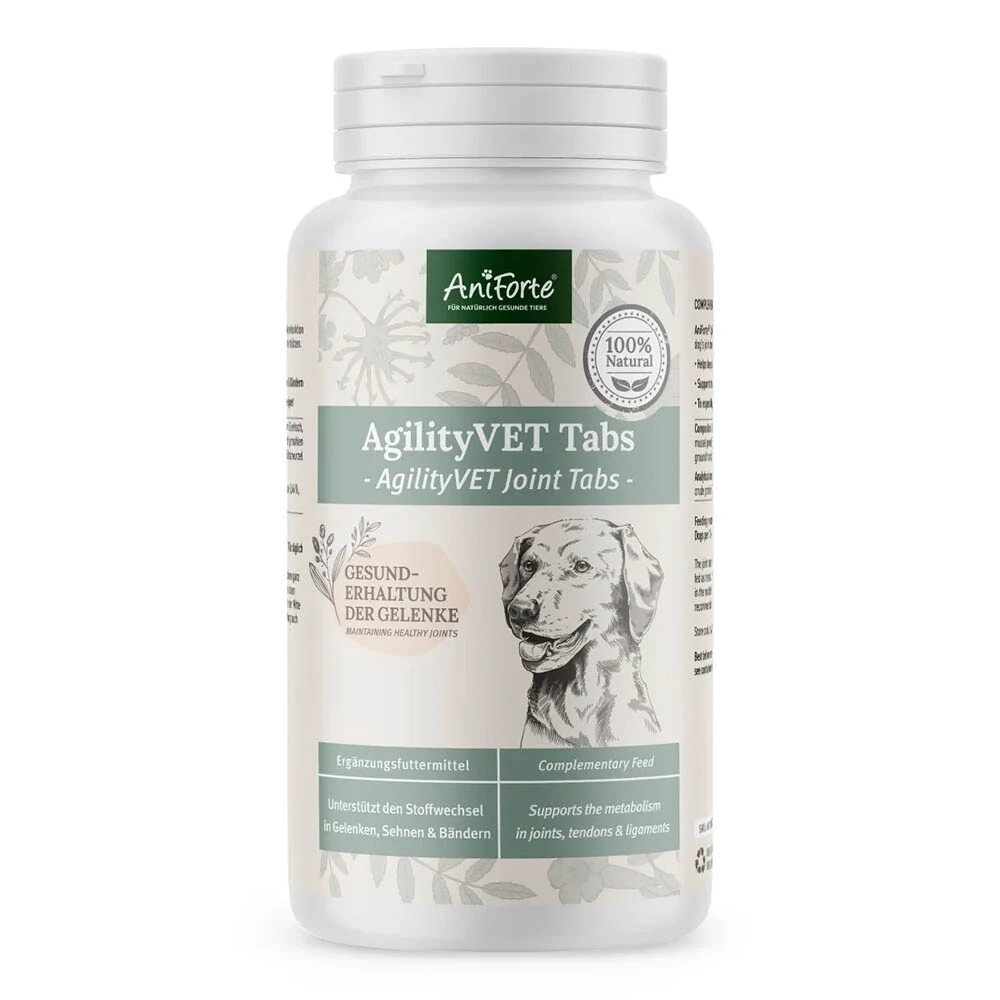 AniForte® AgilityVET Gelenktabletten für Hunde können durch die optimale Versorgung mit den enthaltenen Rohstoffen, wie z.B. Kollagen und Teufelskralle, Hunde auf natürliche Weise unterstützen.