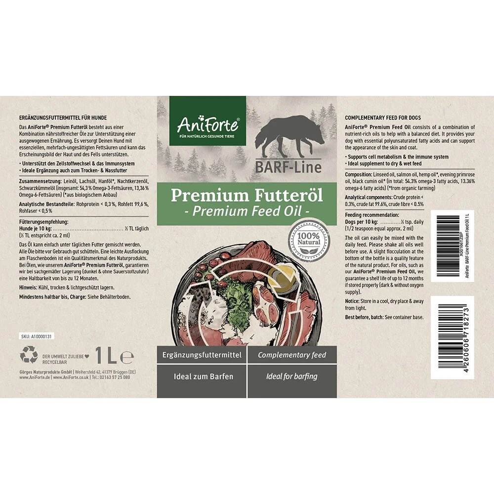 Das AniForteÂź Premium Futteröl fĂŒr Hunde ist ein hochwertiges ErgĂ€nzungsfuttermittel zur UnterstĂŒtzung einer ausgewogenen ErnĂ€hrung. Eine Kombination nĂ€hrstoffreicher Ăle versorgt Ihren Liebling mit essenziellen, mehrfach ungesĂ€ttigten FettsĂ€uren und kann das Erscheinungsbild der Haut und des Fells unterstĂŒtzen.