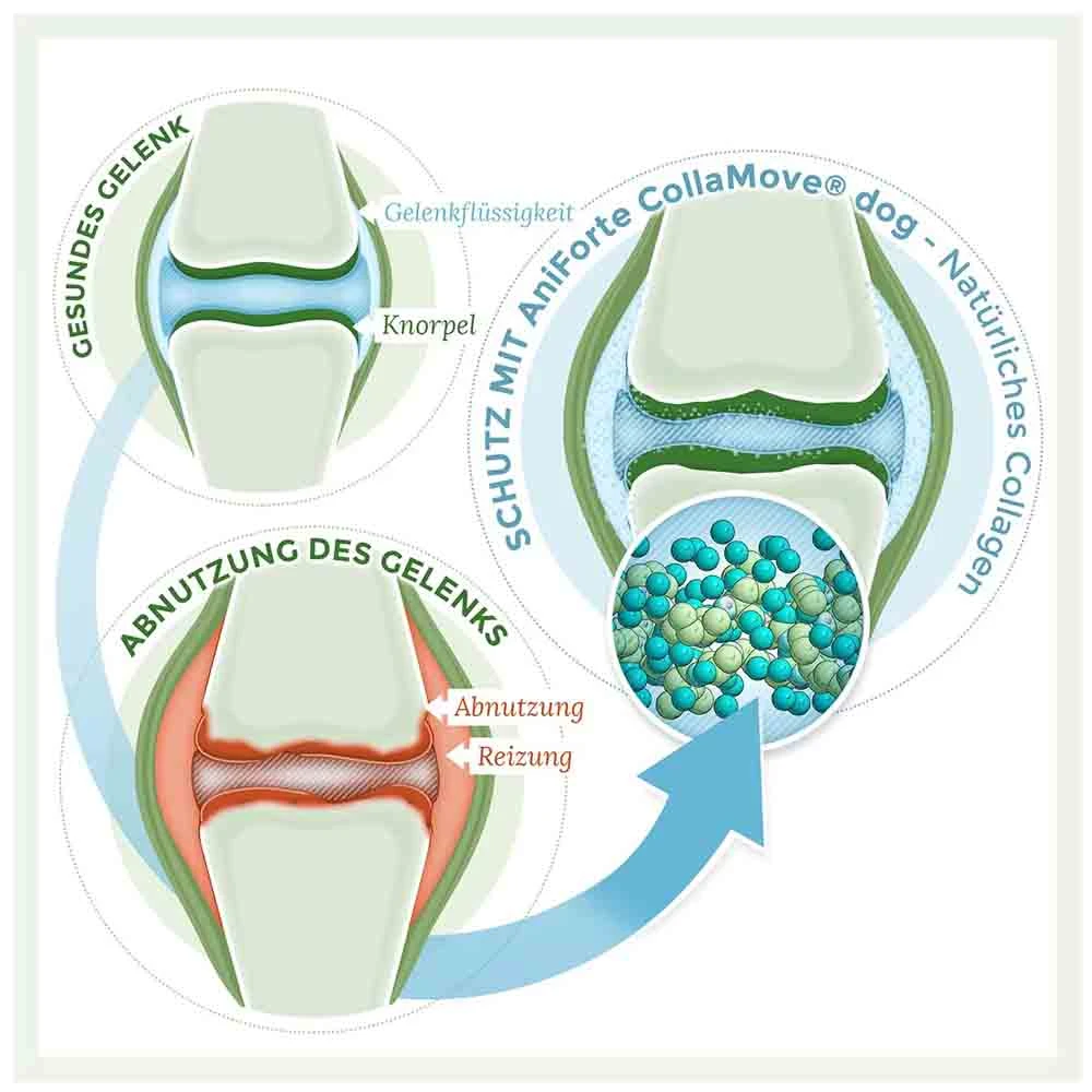 AniForteÂź CollaMoveÂź dog kann durch eine optimale Versorgung mit Kollagen fĂŒr Hunde die normale Gelenkfunktion und AgilitĂ€t auf natĂŒrliche Weise unterstĂŒtzen.