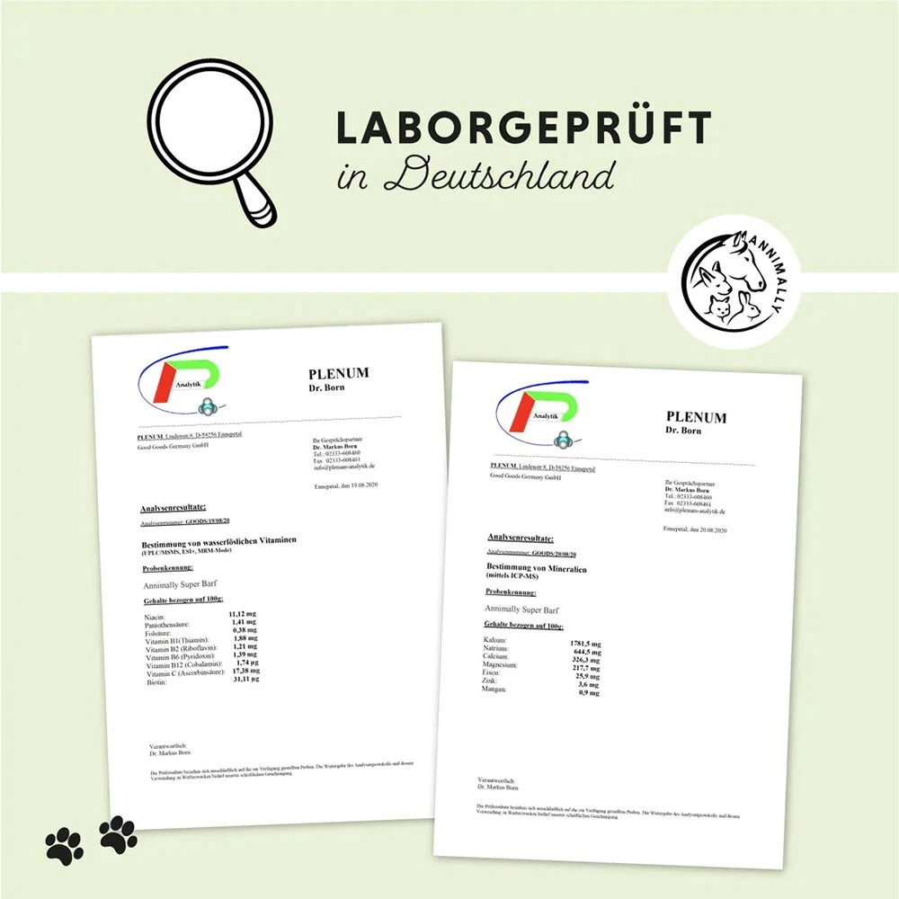 Super Barf versorgt den Vierbeiner mit allen wichtigen Vitaminen, Mineralien, Spurenelementen, Ballaststoffen und AminosÀuren.