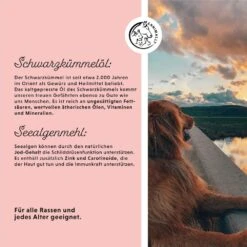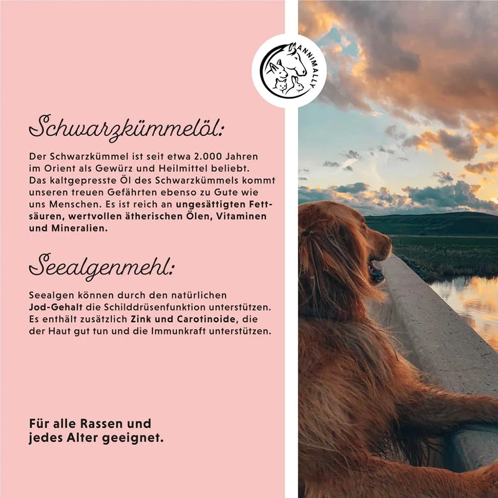 Bei SpaziergĂ€ngen mit dem Hund im GrĂŒnen, auf Feldern, im Wald und hohem Gras, wenn die Sonne wieder scheint, ist unser Pulver eine natĂŒrliche UnterstĂŒtzung ohne jegliche Nebenwirkungen, die dauerhaft dem Hund gegeben werden kann. Keine Chemie, keine Biozide, kein unnötiger Zusatz fĂŒr den Hund. Die Verwendung von Zistrose geht bis in die Antike zurĂŒck. Diese essbare Pflanze enthĂ€lt einen hohen Anteil an sekundĂ€ren Pflanzenstoffen, den sogenannten Polyphenolen. SchwarzkĂŒmmelöl ist reich an Ă€therischen Ălen, ungesĂ€ttigten FettsĂ€uren und Vitaminen und wird bereits seit 2.000 Jahren als Heilmittel eingesetzt.