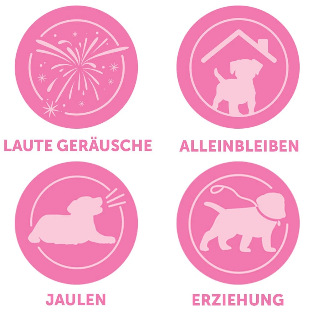 Ihnen und Ihrem Welpen in vielen anderen Situationen, z.B. beim Entdecken der neuen Umgebung, beim Durchschlafen, Alleinbleiben, Autofahren und bei Angst vor lauten Geräuschen.