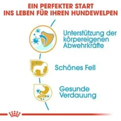 ROYAL CANIN Poodle Puppy wurde speziell für Pudel Welpen bis zu 12 Monaten entwickelt. Dank eines exklusiven Antioxidanzienkomplexes (einschließlich Vitamin E) hilft das Welpenfutter dabei, die körpereignen Abwehrkräfte zu unterstützen, während sie sich allmählich entwickeln. Weiterhin enthält ROYAL CANIN Poodle Puppy eine spezielle Kombination von Nährstoffen mit hochwertigen Proteinen (L.I.P.), die speziell für ihre hohe Verdaulichkeit ausgewählt wurden.